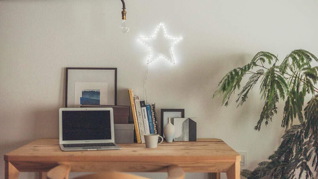 白い星型のスチールに細かなLEDライトが巻き付いている商品です。 軽いので(本体80g程度)プッシュピンなどでも簡単に設置することができます。 電源は単三電池3本、もしくはUSB電源のどちらでもご使用いただけます。 壁掛け用のフックが同梱されています。 - LED約50球 - 高さ/幅 30 cm - コード全長 145 cm